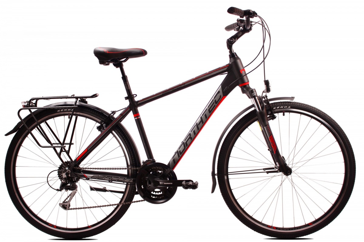 Solidny, wytrzymały rower trekkingowy dla amatorów turystyki rowerowej. Lekka hydroformowana rama aluminiowa o komfortowej geometrii, posiadająca system: Cable Inside Frame. Niezawodna grupa napędowa Shimano Alivio/Altus 3x8. Amortyzator Suntour NEX P 700C 63mm z regulacją skoku. Solidne, wzmacniane koła, zbudowane na piastach Shimano HB T500, szprychach Sapim. Amortyzowany wspornik siodła, szerokie wygodne siodełko elastomerowe. W podstawowym wyposażeniu zamontowany jest bagażnik aluminiowy, oświetlenie ledowe bateryjne, solidne błotniki RPZ oraz podpórka.